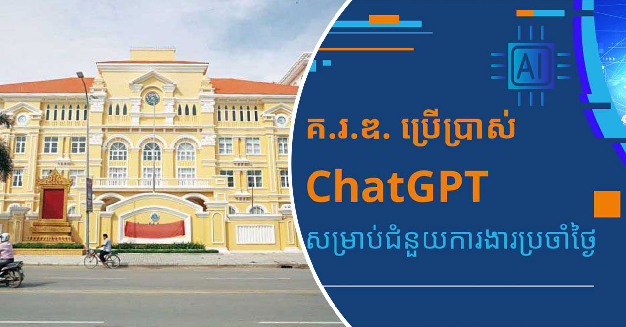 ភ្នំពេញៈ ប្រមាណជាង៦ខែកន្លងមកនេះ គណៈកម្មាធិការរដ្ឋាភិបាលឌីជីថលបានប្រើប្រាស់ ChatGPT ដើម្បីសម្រួលដល់ការបំពេ​ញការងារប្រចាំថ្ងៃរបស់ខ្លួន និងការងារផ្នែកខ្លះរបស់ក្រសួងប្រៃ​សណីយ៍ និងទូរគមនាគមន៍ ឱ្យកាន់តែមានប្រសិទ្ធភាពស្របតាមការវិវត្តនៃបច្ចេកវិទ្យា។
