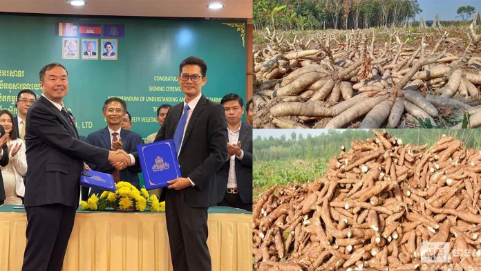 ភ្នំពេញៈ សហភាពសហគមន៍បន្លែសុវត្ថិភាពកម្ពុជា និងក្រុមហ៊ុន Global Ecological Rice (Cambodia) Co., Ltd. របស់ភាគីចិន បានធ្វើការចុះអនុសារណៈយោគយល់ និងកិច្ចសន្យាផលិតកម្មកសិកម្មដំឡូងមីកម្ពុជា ដើម្បីជំរុញការនាំចេញដំឡូងមីទៅកាន់ទីផ្សារប្រទេសចិន។