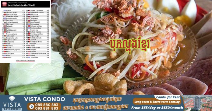 បុកល្ហុងខ្មែរជាប់ចំណាត់ថ្នាក់ជាមុខម្ហូបបែបសាឡាដល្អបំផុតមួយនៅលើពិភពលោក