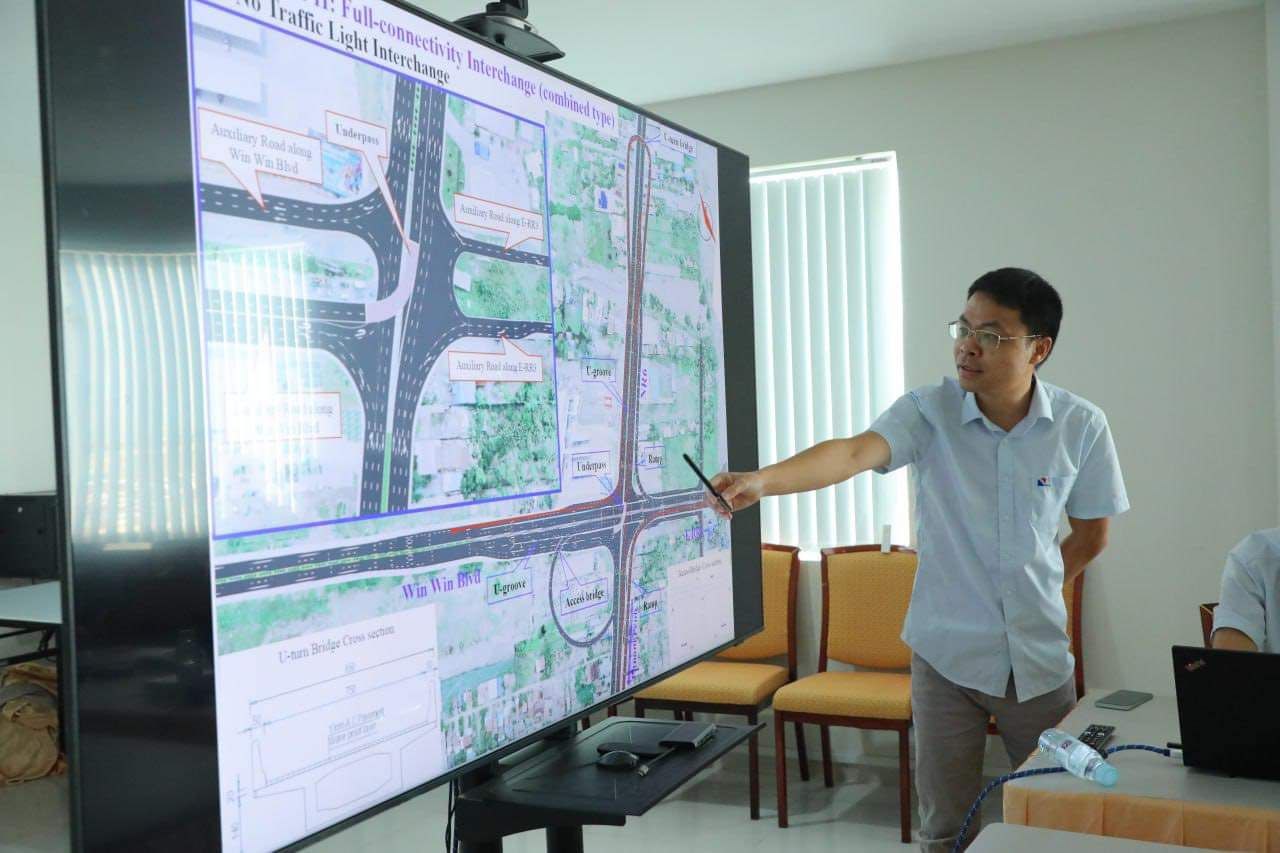 ថ្នាក់ដឹកនាំក្រុមហ៊ុនសំណង់សៀងហៃ ដែលទទួលបន្ទុកសិក្សាលើគំរោងនេះ បានលើកយកមកធ្វើបទបង្ហាញ ជូនថ្នាក់ដឹកនាំក្រសួង ដើម្បីពិនិត្យពិភាក្សា។