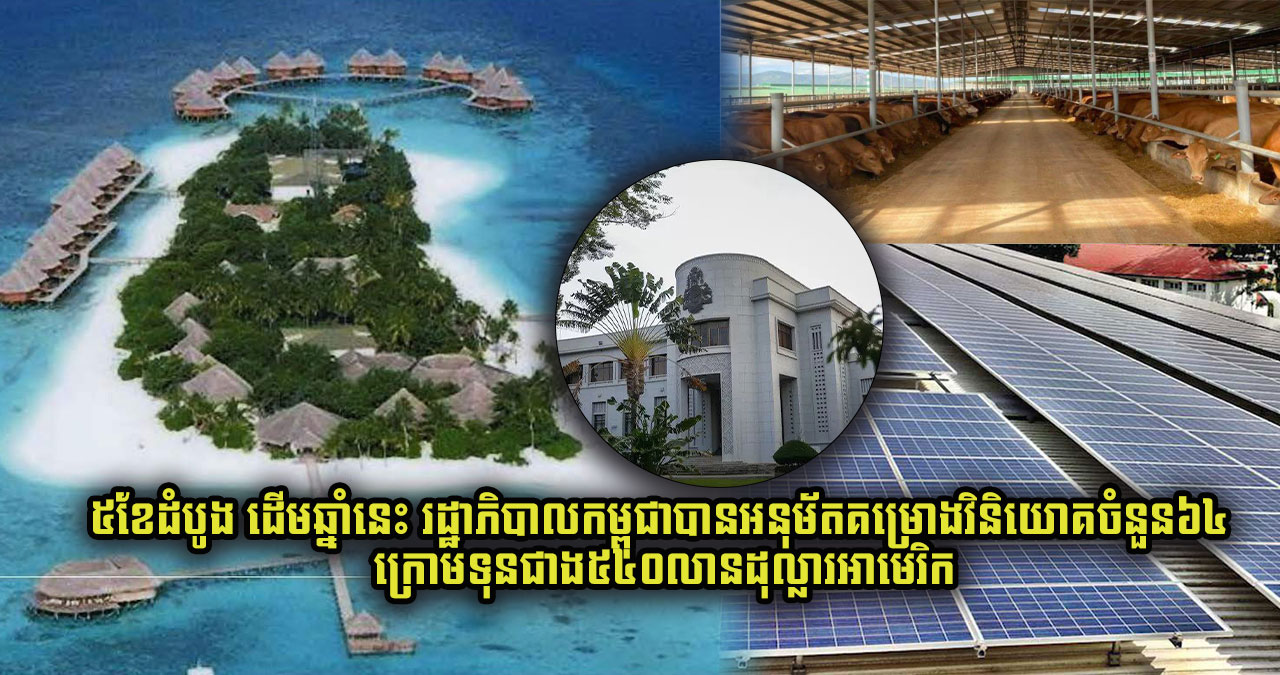 ភ្នំពេញ: នៅក្នុងរយៈពេលប្រាំខែដំបូងនៃឆ្នាំ២០២៣នេះ គម្រោងវិនិយោគចំនួន៦៤ ក្រោមទុនវិនិយោគសរុបចំនួន៥៤០,៧៤លានដុល្លារត្រូវបានអនុម័តដោយក្រុមប្រឹក្សាអភិវឌ្ឍន៍កម្ពុជា (CDC) និងបង្កើតការងារបានចំនួន៧៨.២៩២កន្លែង។