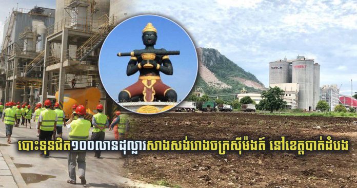 បាត់ដំបងៈ រដ្ឋាភិបាលកម្ពុជាបានអនុញ្ញាត្តឱ្យក្រុមហ៊ុន Dong-fang Junma Cement Co., Ltd វិនិយោគលើរោងចក្រផលិតស៊ីម៉ងត៍ថ្មីមួយ ដែលមានទុនវិនិយោគជិត ១០០ លានដុល្លារនៅខេត្តបាត់ដំបង។