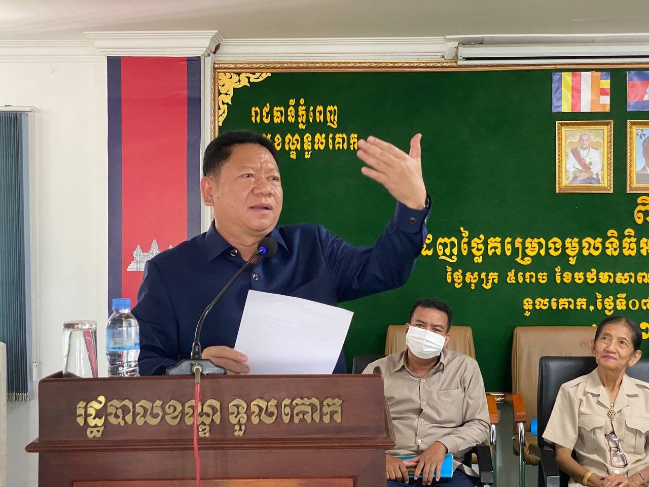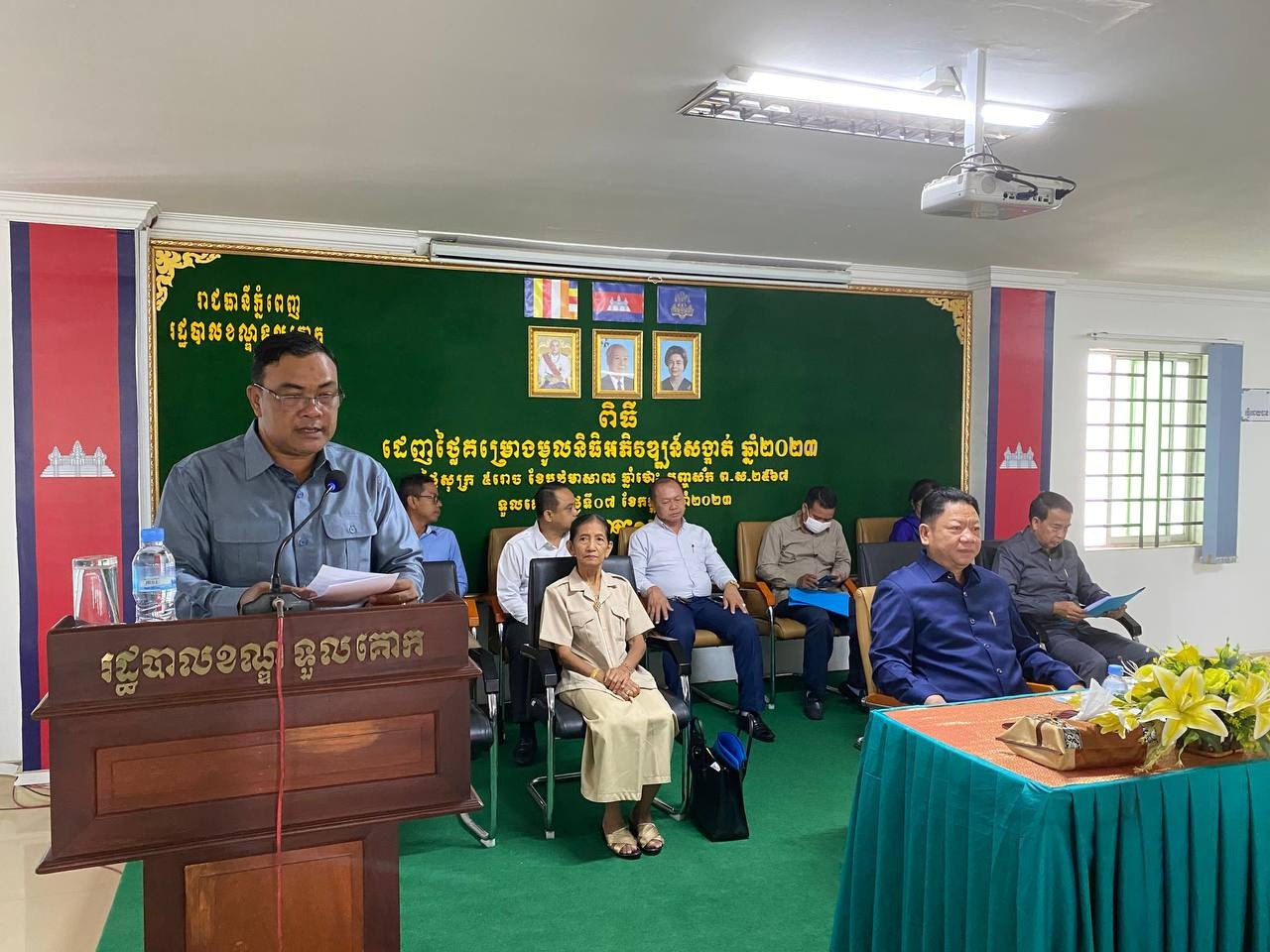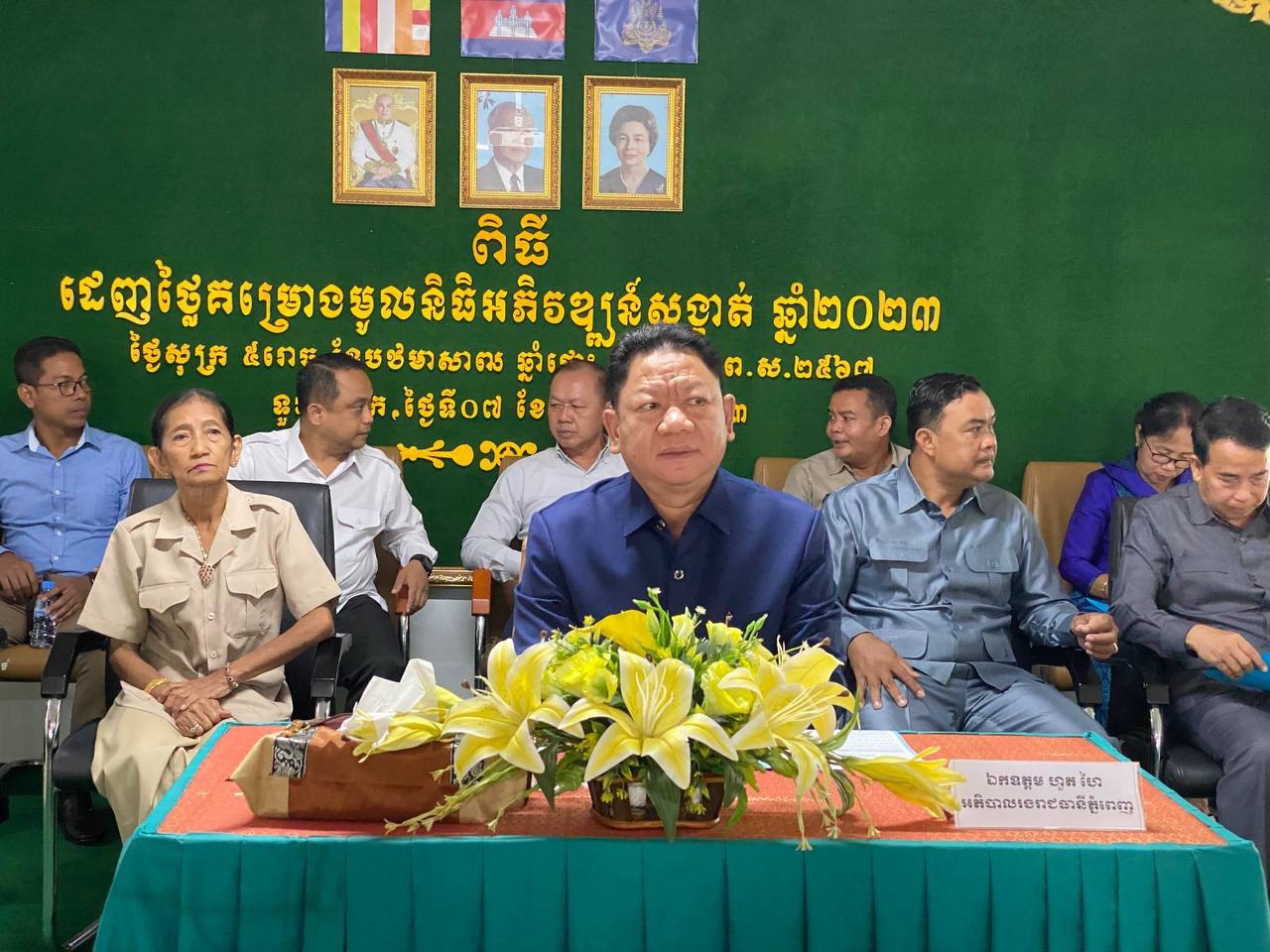 ពិធីដេញថ្លៃគម្រោងមូលនិធិអភិវឌ្ឍន៍សង្កាត់ ឆ្នាំ២០២៣នេះ បានធ្វើឡើង នាព្រឹកថ្ងៃទី៧ ខែកក្កដា ឆ្នាំ២០២៣ ក្រោមអធិបតីភាព លោកហួត ហៃ អភិបាលរងរាជធានីភ្នំពេញ តំណាងលោក ឃួង ស្រេង អភិបាលនៃគណៈអភិបាលរាជធានីភ្នំពេញ និងលោក ជា ពិសី អភិបាល នៃគណៈអភិបាលខណ្ឌទួលគោក នៅសាលាខណ្ឌទួលគោក។