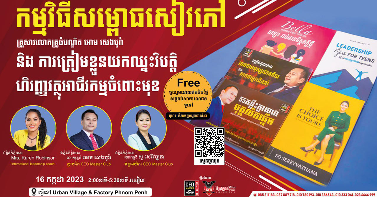 ⏰ចុះឈ្មោះកក់សំបុត្រឱ្យបានមុន ចូលរួម📔កម្មវិធីសម្ភោធសៀវភៅគ្រួសារលោកគ្រូធំបណ្ឌិត អោម សេងបូរ៉ា និង ការត្រៀមខ្លួនយកឈ្នះវិបត្តិហិរញ្ញវត្ថុអាជីវកម្មចំពោះមុខឥឡូវនេះ!