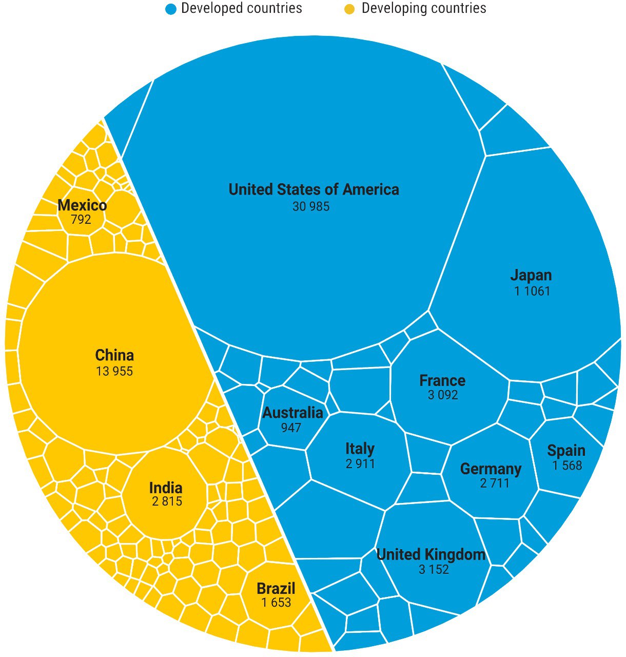 បណ្តាប្រទេសកំពុងអភិវឌ្ឍន៍ ជំពាក់ជិត៣០ភាគរយ នៃបំណុលសាធារណៈសកល ដែលក្នុងនោះ៧០ភាគរយ ត្រូវបានតំណាងដោយប្រទេសចិន ឥណ្ឌា និងប្រេស៊ីល។ បណ្តាប្រទេសកំពុងអភិវឌ្ឍន៍ចំនួន៥៩ ប្រឈមមុខនឹងសមាមាត្របំណុលធៀបទៅនឹង GDP លើសពី៦០ភាគរយ ដែលបង្ហាញពីកម្រិតជំពាក់បំណុលខ្ពស់។