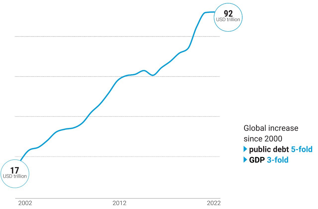 អន្តរជាតិ: យោងតាមរបាយការណ៍ របស់អង្គការសហប្រជាជាតិ (UN) បានឱ្យដឹងថា បំណុលសាធារណៈសកល បានហក់ឡើងដល់កំណត់ត្រា៩២ទ្រីលានដុល្លារក្នុងឆ្នាំ២០២២។