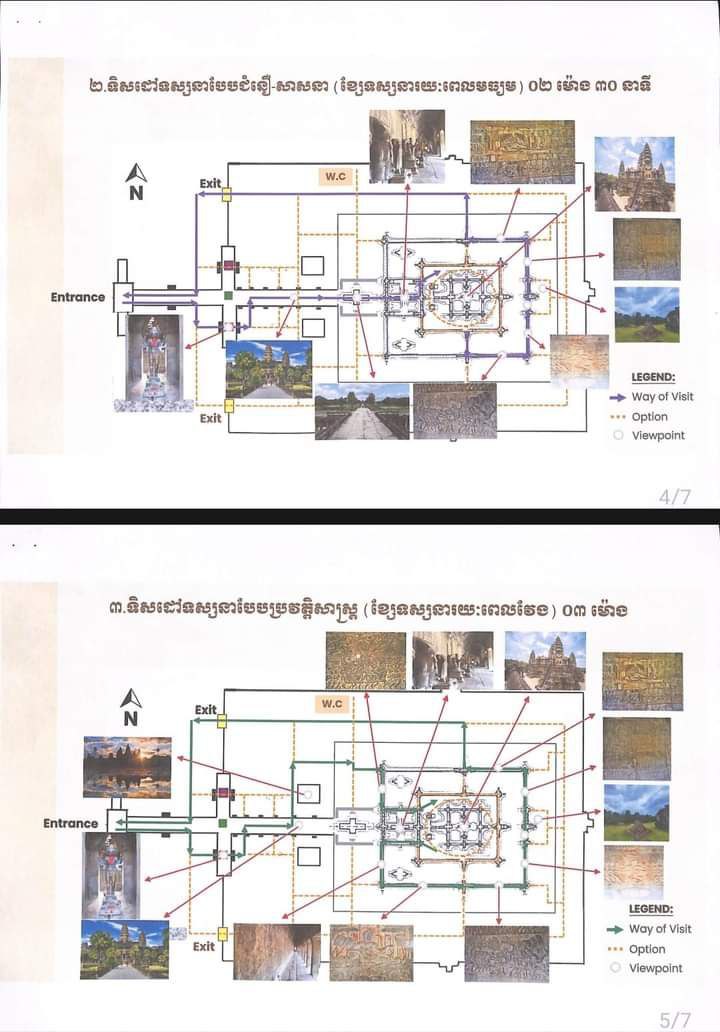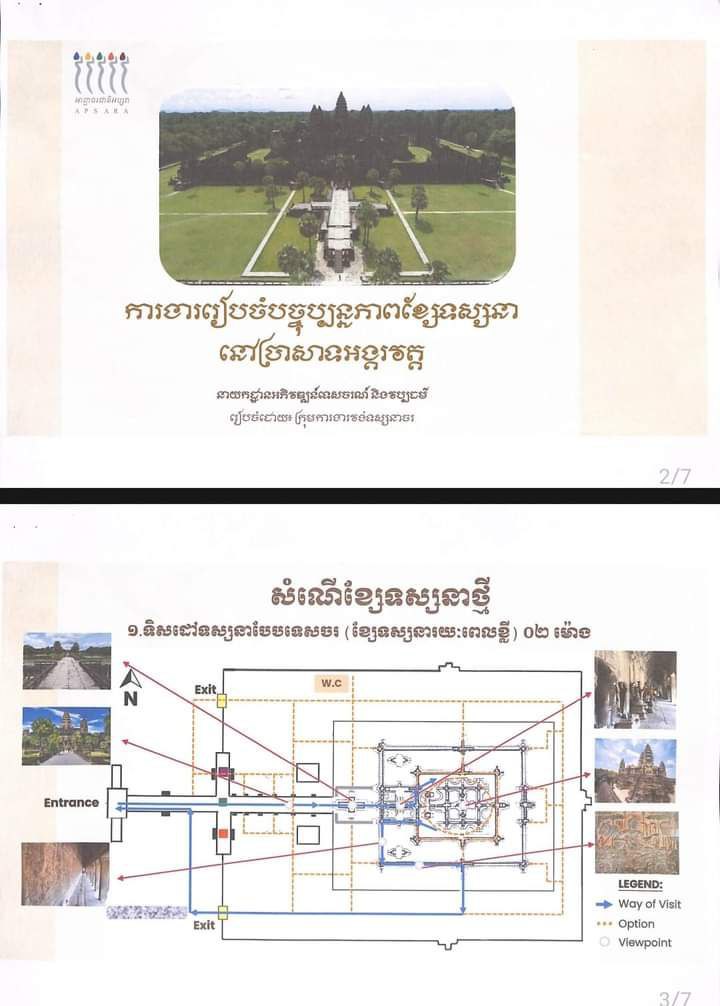 អាជ្ញាធរជាតិអប្សរាមានកិត្តិយស សូមជូនដំណឹងដល់ក្រសួង ស្ថាប័នជាតិ-អន្តរជាតិ អាជ្ញាធរដែនដី មន្ទីរ-អង្គភាព សមាគមទីភ្នាក់ងារទេសចរណ៍ សមាគមមគ្គុទ្ទេសក៍ទេសចរណ៍ សមាគមដឹកជញ្ជូនភ្ញៀវទេសចរ ក្រុមហ៊ុនទេសចរណ៍ ភ្ញៀវ ទេសចរជាតិ-អន្តរជាតិ និងសាធារណជនទាំងអស់មេត្តាជ្រាបថា ដើម្បីបង្កើនគុណភាពនៃការទស្សនា និងលើកតម្លៃប្រាសាទ ក៏ដូចជាផ្តល់នូវបទពិសោធន៍ល្អៗជូនភ្ញៀវទេសចរជាតិ និងអន្តរជាតិ អាជ្ញាធរជាតិអប្សរាបានសិក្សាស្រាវជ្រាវ និងរៀបចំខ្សែ ទស្សនាថ្មីនៅប្រាសាទចំនួនពីរ គឺប្រាសាទអង្គរវត្ត និងប្រាសាទបន្ទាយស្រី។ ខ្សែទស្សនាថ្មីនេះ គ្រោងនឹងដាក់ឱ្យដំណើរការ សាកល្បងចាប់ពីថ្ងៃទី០១ ខែសីហា ឆ្នាំ២០២៣តទៅ។ តាមរយៈនេះ ហេដ្ឋារចនាសម្ព័ន្ធ និងបរិក្ខារចាំបាច់នានា ដូចជាជណ្តើរ វនាំង ខ្សែរបារ ស្លាកសញ្ញាប្រាប់ទិសដៅទស្សនា ផ្ទាំងព័ត៌មានបរិយាយពីចម្លាក់ នៅតាមជញ្ជាំងថែវ… ។ល។ ត្រូវបានរៀបចំថ្មី បន្ថែមរួចរាល់ ដើម្បីសម្រួលដល់ការដាក់ដំណើរការសាកល្បងនេះ។ ខ្សែទស្សនាថ្មីមានជម្រើសដូចខាងក្រោម៖