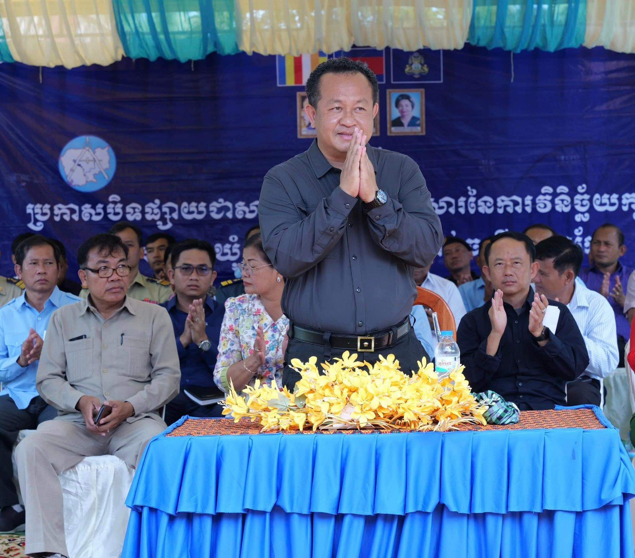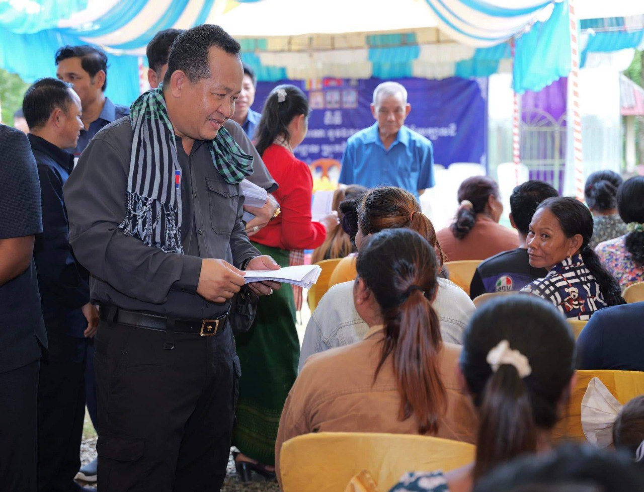 លោកបានសំណូមពរដល់អជ្ញាធរគ្រប់ជាន់ថ្នាក់ និងស្ថាប័នពាក់ព័ន្ធ រួមទាំងប្រជាពលរដ្ឋទាំងអស់ ដែលជាអ្នកកាន់កាប់ដីធ្លីនៅក្នុងភូមិអំពេងនេះ ត្រូវបង្កលក្ខណៈផ្ដល់ភាពងាយស្រួល និងចូលរួមសហការឱ្យបានរលូន ជាមួយក្រុមការងារចុះបញ្ជីដីធ្លី ដើម្បីឱ្យការអនុវត្តតាមនិតិវិធី នៃការចុះបញ្ជីដីធ្លីប្រព្រឹត្តទៅដោយរលូន ដើម្បីទទួលបានប័ណ្ណកម្មសិទ្ធិដីធ្លី ដែលជាឯកសាររដ្ឋបាល បញ្ជាក់ពីសិទ្ធិជាម្ចាស់ លើក្បាលដីនីមួយៗ៕