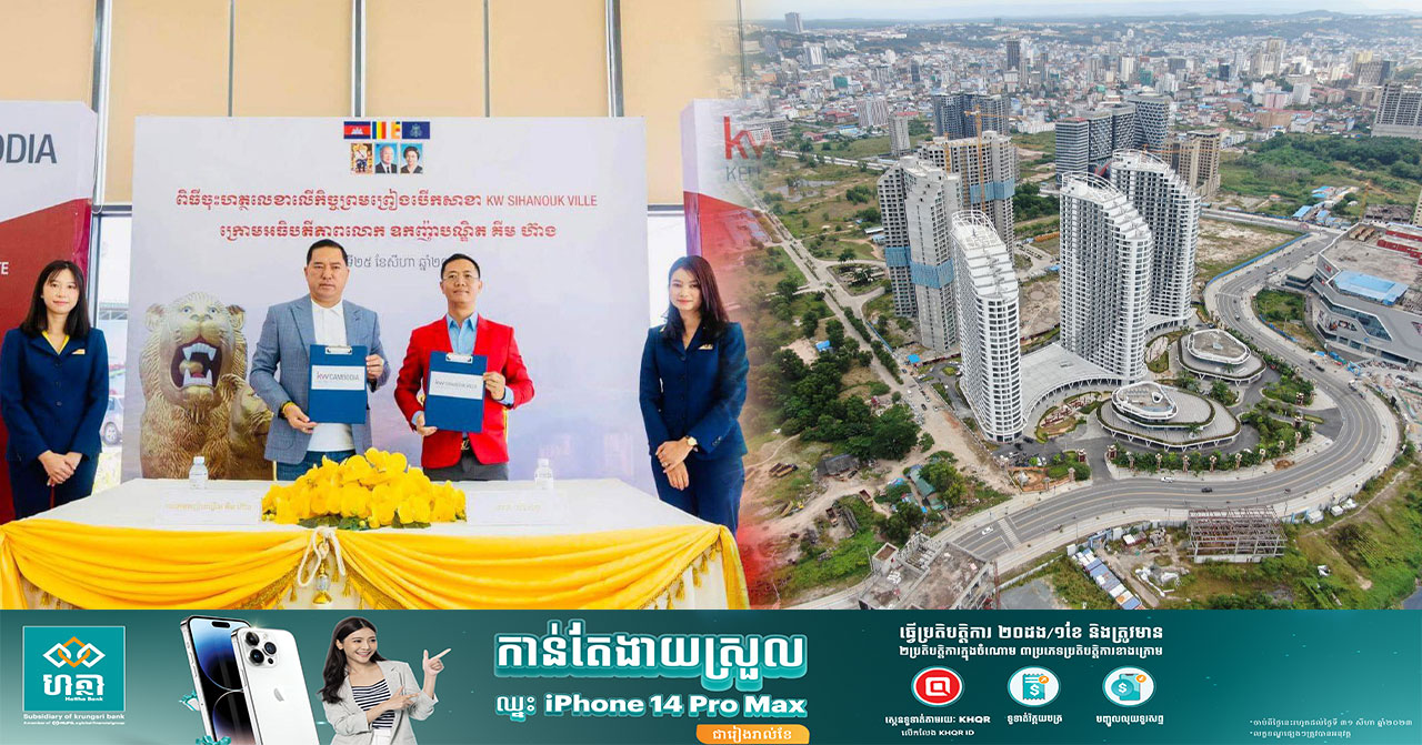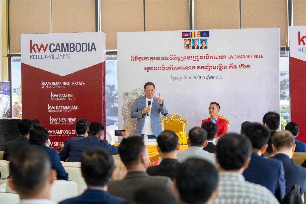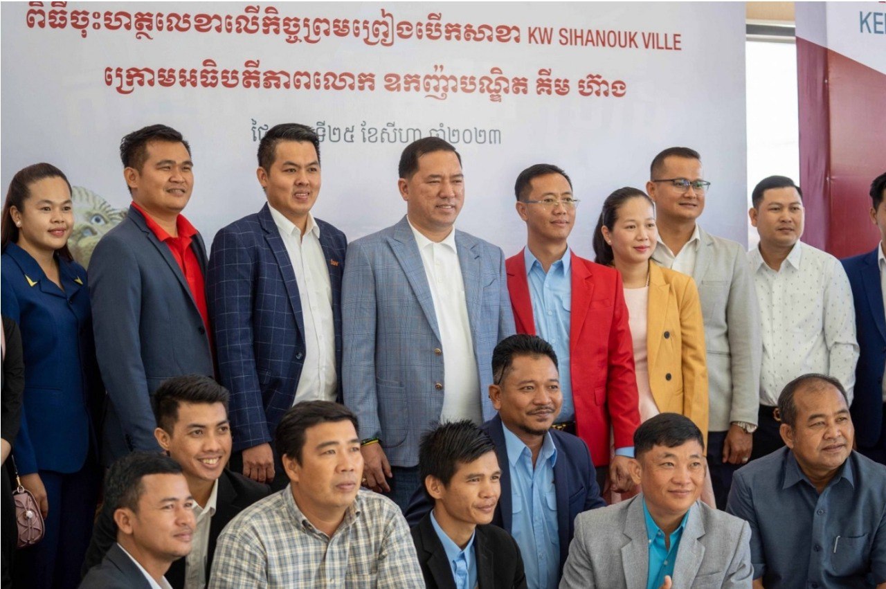 ភ្នំពេញៈ ឧកញ៉ាបណ្ឌិត គីម ហ៊ាង ប្រធានស្ថាបនិក KW Cambodia និងជាអគ្គនាយក បុរី វិមានសំណាង បានអញ្ជើញជាអធិបតី ក្នុងពិធីចុះហត្ថលេខាលើ កិច្ចព្រមព្រៀងបើកសាខា KW ខេត្តព្រះសីហនុ (KW Sihanouk Ville)។