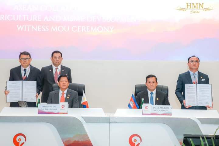 លើសពីនេះ កាលពីល្ងាចថ្ងៃទី៥ ខែកញ្ញា ឆ្នាំ ២២៣ ក្នុងឱកាសអញ្ជើញចូលរួម ក្នុងកិច្ចប្រជុំកំពូលអាស៊ានលើកទី៤៣ សម្ដេចមហាបវរធិបតីហ៊ុន ម៉ាណែតបានជួបជាមួយ នឹងលោកFerdinand Romualdez Marcos Jr.) ប្រធានាធិបតីហ្វីលីពីន និងបានអញ្ជើញធ្វើជាសាក្សី ក្នុងពិធីចុះហត្ថលេខាលើអនុស្សរណៈ នៃការយោគយល់គ្នាសម្រាប់ភាពជាដៃគូ ក្នុងការអភិវឌ្ឍកសិកម្ម និងសហគ្រាស មីក្រូ-ធុនតូច និងមធ្យមកម្ពុជា-ហ្វីលីពីន។