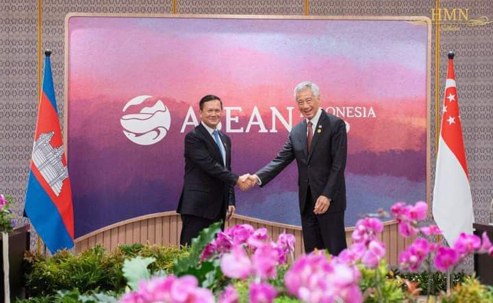 ក្នុងឱកាសអញ្ជើញចូលរួមកិច្ចប្រជុំ កំពូលថ្នាក់តំបន់នេះ សម្តេច បានជួបពិភាក្សាការងារជាមួយលោកលី សៀនលុង នាយករដ្ឋមន្រ្តីសិង្ហបុរីកាលពី​ថ្ងៃ​ទី​៥ ខែកញ្ញា ឆ្នាំ២០២៣នេះ បានពិភាក្សាទៅលើការបន្តពង្រឹង ​កិច្ចស​ហប្រ​តិប​ត្តិកា​រដែ​ល​មា​ន​ស្រា​ប់​ និងពង្រីកកិច្ចសហប្រតិបត្តិការលើវិស័យ ដែលមានសក្ដានុពលនានា។ក្នុងជំនួប​នៅរដ្ឋធានីហ្សាការតា នៃសាធារណរដ្ឋឥណ្ឌូណេស៊ីថ្ងៃនេះ ថ្នាក់ដឹកនាំ​ទាំ​ង​ពី​រ​ស​ម្រេចបន្តពង្រឹង និងពង្រីកកិច្ចសហ​ប្រតិ​ប​ត្តិ​កា​រ​លើវិស័យ ដូចជា ពាណិជ្ជកម្ម វិនិយោគ ទេ​ស​ចរណ៍ អប់រំ សន្តិសុខថាមពល សុខាភិបាល ឌីជីថល កសិកម្ម និង ការពារជាតិ ។ ប្រមុខរដ្ឋាភិបាលទាំងពីរ ក៏បានពិភាក្សាលើលទ្ធភាពក្នុងការនាំអង្ករ និងផលិ​តផ​លក​សិក​ម្ម​ដទៃទៀតពីកម្ពុជា ចូលមកកាន់ទីផ្សារសិង្ហបុរី ក៏ដូចជា ​គម្រោ​ងនៃ​ការ​សាង​ស​ង់​ខ្សែ​ ប​ញ្ជូ​ន​ថាមពលក្រោមសមុទ្រ ពីប្រទេសឡាវ ឆ្ពោះទៅប្រទេសសិង្ហបុរីផងដែរ ។