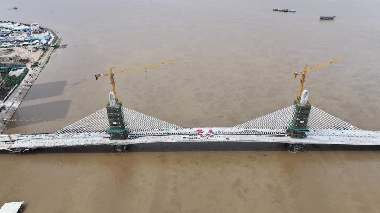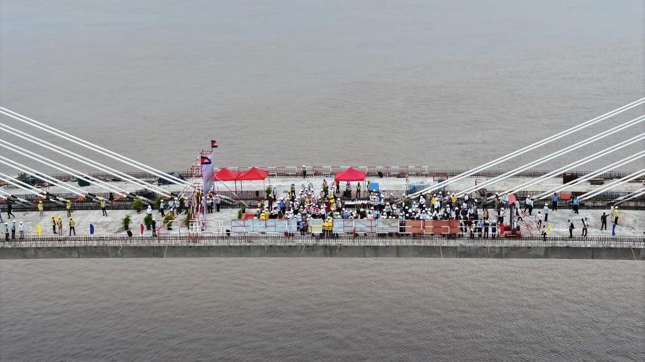 នេះបើតាមការលើកឡើងរបស់លោក ឃួង ស្រេង អភិបាលរាជធានីភ្នំពេញ ខណៈដែលលោក និងអ្នកឧកញ៉ា ពុង ឃាវសែ ប្រធានក្រុមប្រឹក្សាភិបាល OCIC អញ្ជើញអធិបតីភាព ក្នុងពិធីតភ្ជាប់តួស្ពាននេះ កាលពីរសៀលថ្ងៃទី១៣ ខែកញ្ញា ឆ្នាំ២០២៣នេះ នៅចំណុចស្ពានបេតុងខ្សែកាបត្រើយខាងលិច(កោះពេជ្រ) សង្កាត់ទន្លេបាសាក់ ខណ្ឌចំការមន។