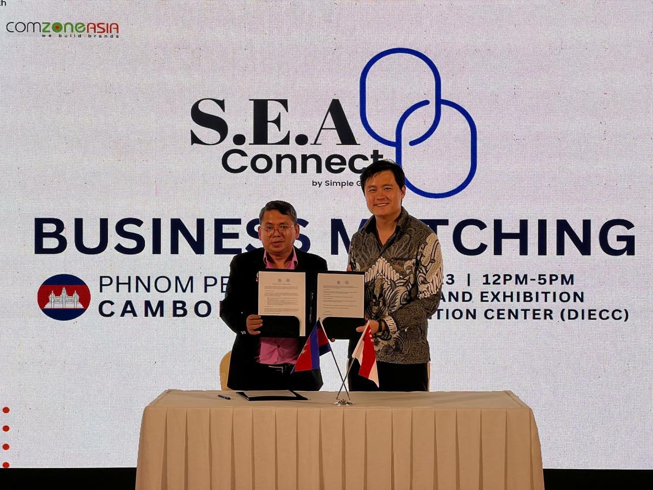 ភ្នំពេញៈ ពិធីចុះហត្ថលេខាលើអនុស្សរណៈ នៃការយោគយល់គ្នា (MoU) រវាងសមាគមពាណិជ្ជករដឹកជញ្ជូន និងខ្សែច្រវាក់ផ្គត់ផ្គង់នៅកម្ពុជា (LOSCBA) ជាមួយក្រុមហ៊ុន Simple Group (SG) របស់ប្រទេសសិង្ហបុរី។