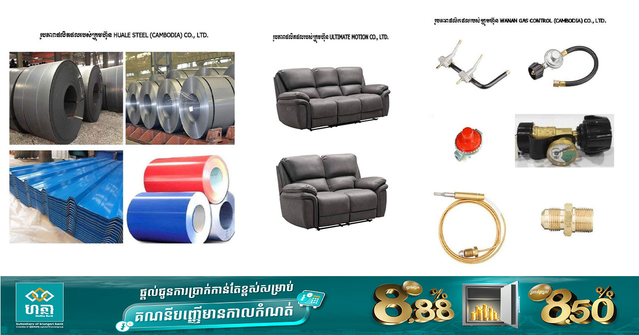 ១- “HUALE STEEL (CAMBODIA) CO., LTD.” គម្រោងបង្កើតរោងចក្រផលិតដែកគ្រប់ប្រភេទ ដែលមានទីតាំងវិនិយោគស្ថិតនៅក្នុងតំបន់សេដ្ឋកិច្ចពិសេស កំពង់ផែក្រុងព្រះសីហនុ ខេត្តព្រះសីហនុ ក្នុងទុនវិនិយោគចំនួន ៤០លានដុល្លារអាម៉េរិក និងអាចបង្កើតការងារបានចំនួន ៥២៣កន្លែង។
