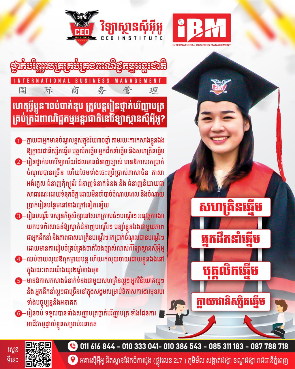 វិទ្យាស្ថានស៊ីអ៊ីអូ CEO Institute ផ្ដល់ជូនអាហារូបករណ៍រហូតដល់ ១០០កន្លែង សម្រាប់ឆ្នាំសិក្សា២០២៣-២០២៤ ចំពោះប្អូនៗសិស្សានុសិស្សមានបំណងសិក្សាថ្នាក់បរិញ្ញាបត្រ ឬបរិញ្ញាបត្ររង ជំនាញគ្រប់គ្រងពាណិជ្ជកម្មអន្តរជាតិ បានមកដល់ហើយ🔔❤️