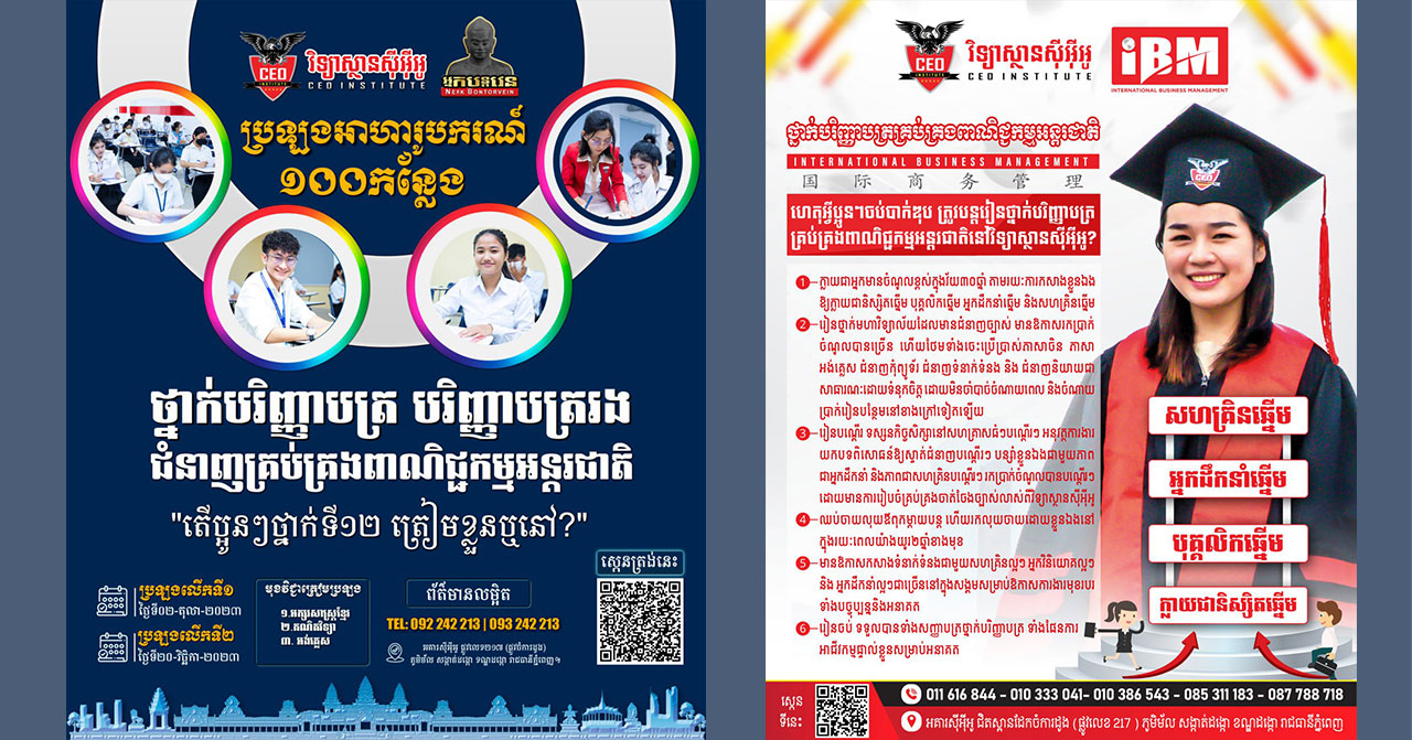 វិទ្យាស្ថានCEO ផ្តល់ឱកាសអាហារូបករណ៍រហូតដល់១០០កន្លែង សម្រាប់ឆ្នាំសិក្សា២០២៣ ២០២៤