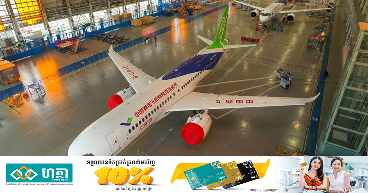 ប្រទេសចិនដាក់តាំងបង្ហាញយន្តហោះផលិតក្នុងស្រុកC919 របស់ខ្លួននៅទីក្រុងហុងកុង