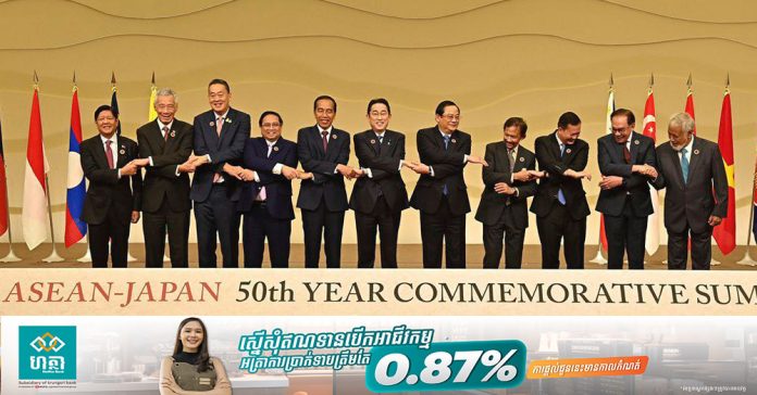 តូក្យូៈ ប្រទេសជប៉ុន និងសមាគមប្រជាជាតិអាស៊ីអាគ្នេយ៍បានព្រមព្រៀងគ្នាកាលពីថ្ងៃអាទិត្យ ដើម្បីពង្រឹងទំនាក់ទំនងក្នុងវិស័យសន្តិសុខ និងសេដ្ឋកិច្ចឱ្យកាន់តែស៊ីជម្រៅ ខណៈបរិយាកាសភូមិសាស្ត្រនយោបាយកំពុងប្រែប្រួល ដោយសារការកើនឡើងនៃឥទ្ធិពលចិន។
