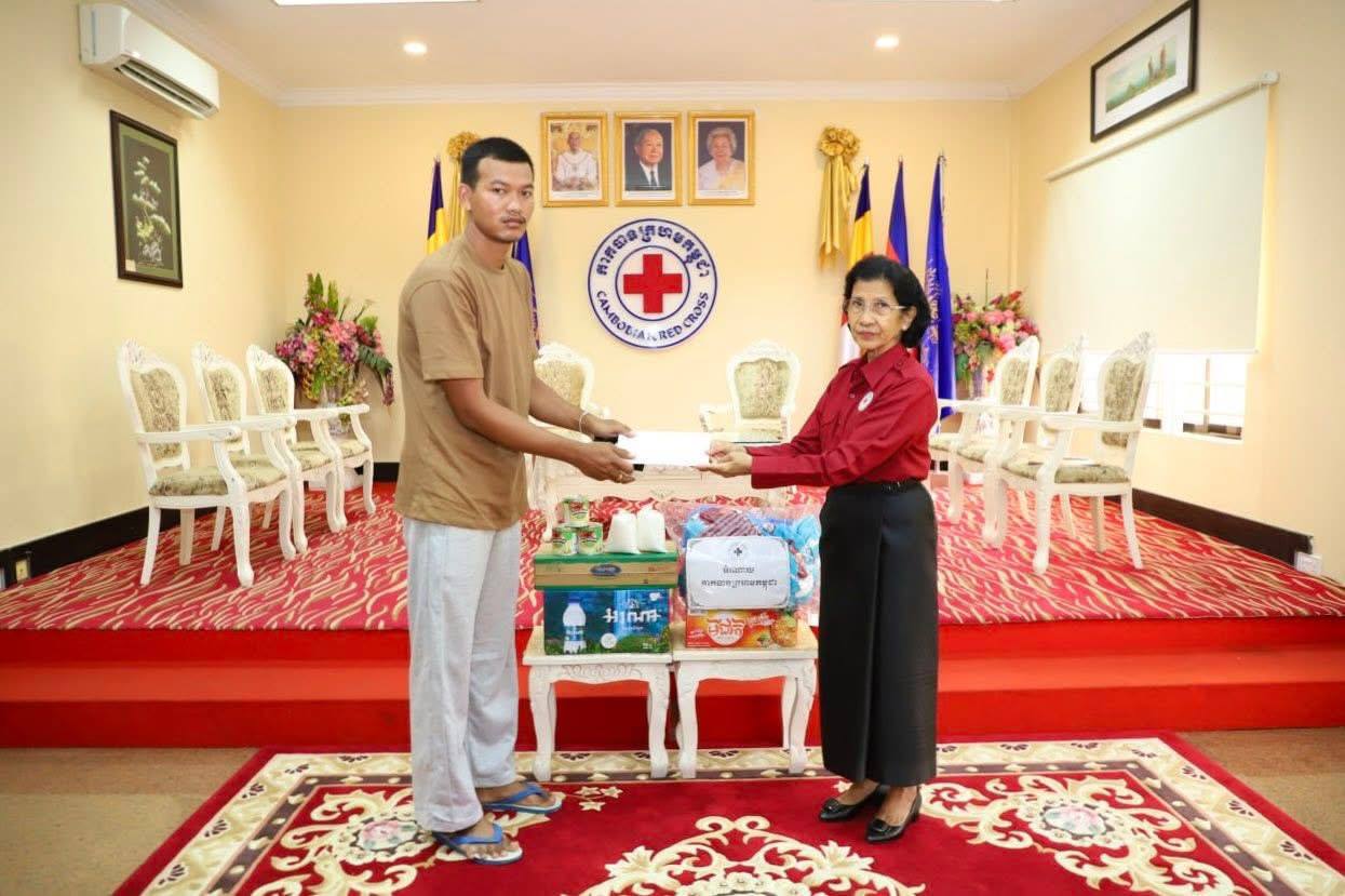 ការប្រកាសនេះ ធ្វើឡើងនៅទីស្នាក់ការកណ្តាលកាកបាទក្រហមកម្ពុជា នារសៀលថ្ងៃទី១៧ ខែតុលា ឆ្នាំ២០២៥ សម្តេចកិត្តិព្រឹទ្ធបណ្ឌិត ប៊ុន រ៉ានី ហ៊ុនសែន ប្រធានកាកបាទក្រហមកម្ពុជា ដោយក្តីអាណិតអាសូរ បានចាត់ឱ្យលោកជំទាវ ពុំ ចន្ទីនី អគ្គលេខាធិការ និងសហការី អញ្ជើញសំណេះសំណាលសួរសុខទុក្ខ និងផ្តល់អំណោយមនុស្សធម៌រួមមាន ថវិកា និងសម្ភារមួយចំនួន ជួយសម្រាលក្នុងការព្យាបាលប្រពន្ធ និងកូនរបស់វីរយុទ្ធជនមួយរូប ឈរជើងនៅជួរមុខដែលកំពុងសង្គ្រោះបន្ទាន់ នៅមន្ទីរពេទ្យក្នុងរាជធានីភ្នំពេញ។