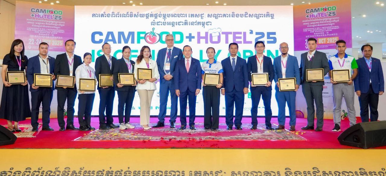 ភ្នំពេញៈ ក្រុមហ៊ុនជាតិ អន្តរជាតិមកពីប្រទេសចំនួន៩ បានចូលរួមក្នុងព្រឹត្តិការណ៍ CAMFood & CAMHotel 2025 នៅរាជធានីភ្នំពេញ ជាមួយនឹងការដាក់តាំងបង្ហាញផលិតផលចម្រុះ។