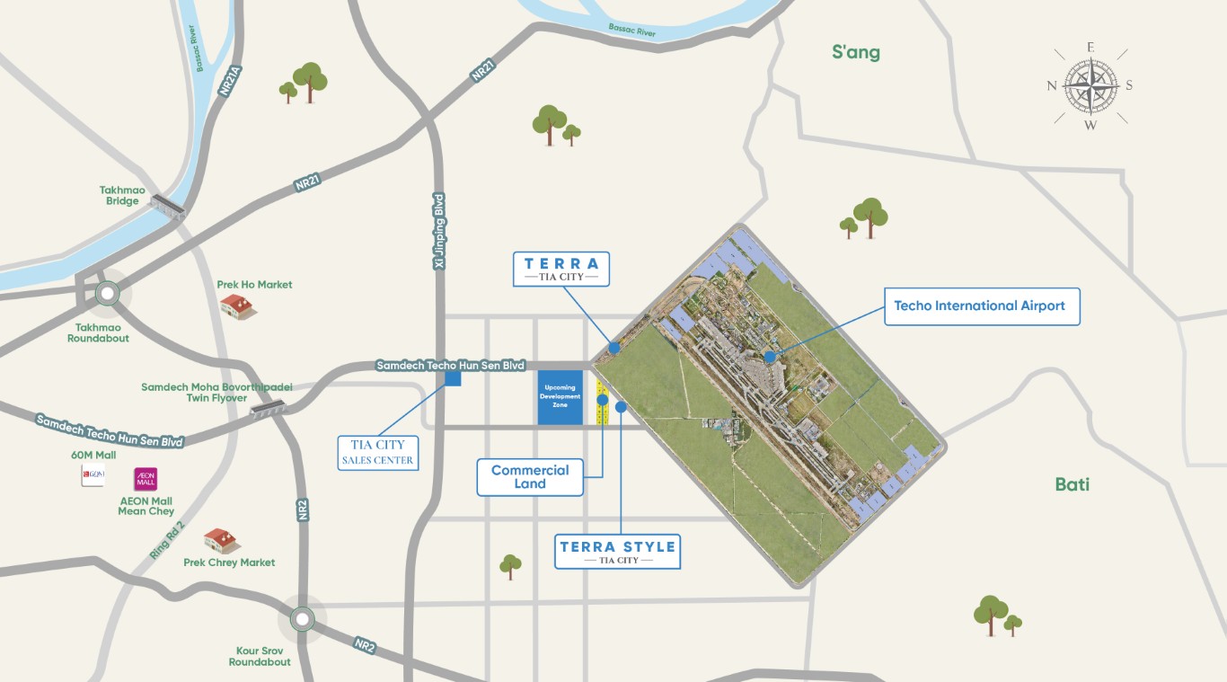 គម្រោង TERRA STYLEជាគម្រោងអភិវឌ្ឍអចលនទ្រព្យដ៏ធំរបស់ TIA CITY នៃក្រុមហ៊ុនOCIC ដែលស្ថិតជាប់ព្រលានយន្តហោះអន្តរជាតិតេជោ។ តំបន់ជុំវិញព្រលានយន្តហោះថ្មីកំពុងរីកចម្រើនយ៉ាងឆាប់រហ័ស និងក្លាយជាតំបន់អភិវឌ្ឍសកម្មបំផុតនៅភាគខាងត្បូងនៃរាជធានីភ្នំពេញគួរឱ្យកត់សំគាល យោងទៅលើទីផ្សារអចលនទ្រព្យ បន្ទាប់ពីអាកាសយានដ្ឋានអន្តរជាតិតេជោបានបើកដំណើរការជើងហោះហើរ ដែលធ្វើឱ្យចរាចរណ៍តាមដងផ្លូវមមាញឹកយ៉ាងខ្លាំង និងជាពិសេសកំណើននៃតម្រូវការលំនៅឋានកាន់តែមានសន្ទុះគួរឱ្យកត់សម្គាល់។