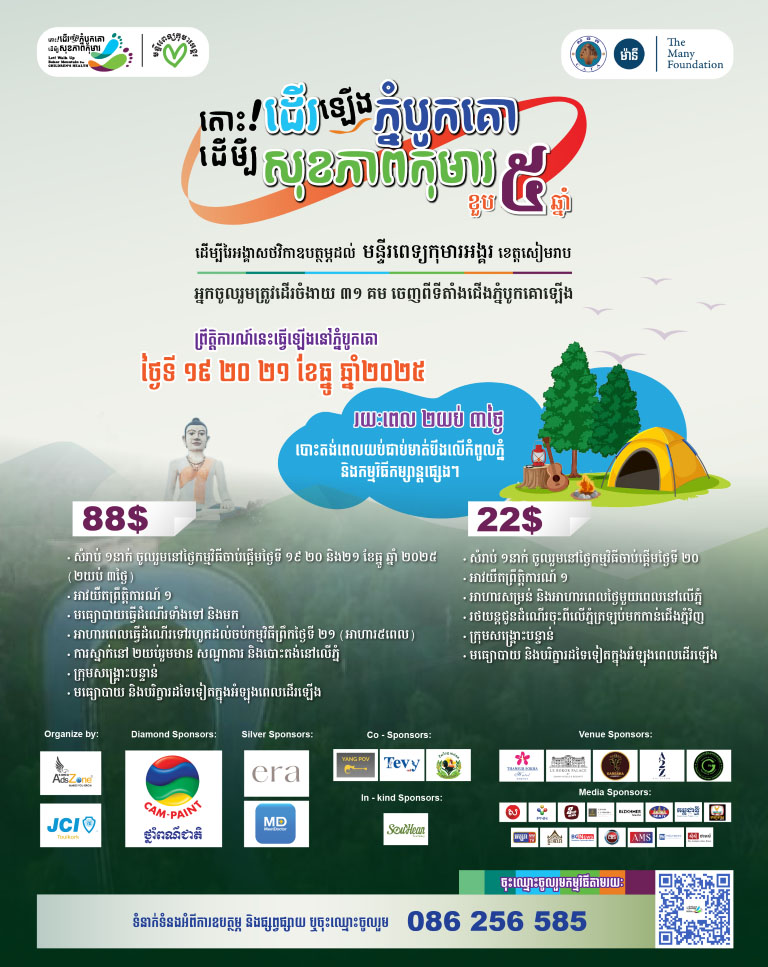 មូលនិធិហ៊ុន ម៉ានីរៀបចំកម្មវិធី “ការឡើងភ្នំបូកគោ ដើម្បីសុខភាពកុមារកម្ពុជាខួប៥ឆ្នាំ”ដើម្បីស្វែងរកថវិកាជួយមន្ទីរពេទ្យកុមារអង្គរ