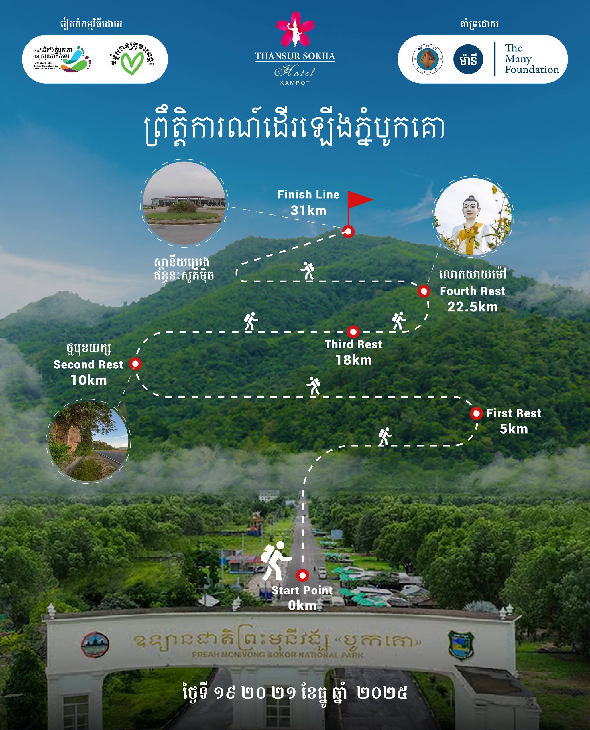 កម្មវិធី ដើរឡើងភ្នំបូកគោដើម្បីសុខភាពកុមារ លើកទី៥ នេះនឹងប្រព្រឹត្តទៅនៅថ្ងៃទី​១៩ ដល់ថ្ងៃទី២១ ខែធ្នូ ឆ្នាំ២០២៥ រយៈពេលបីថ្ងៃពីរយប់ក្នុងទឹកដីនៃខេត្តកំពត ដោយអ្នកចូលរួមត្រូវដើររួមគ្នាចំងាយ ៣១គម ចេញពីទីតាំងជើងភ្នំបូកគោឡើងតាមផ្លូវថ្នល់ និងបញ្ចប់នៅទីតាំងរង្វង់មូលផ្លូវបំបែកនៅលើកំពូលភ្នំ។