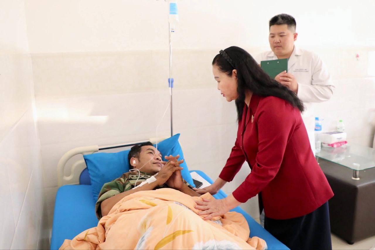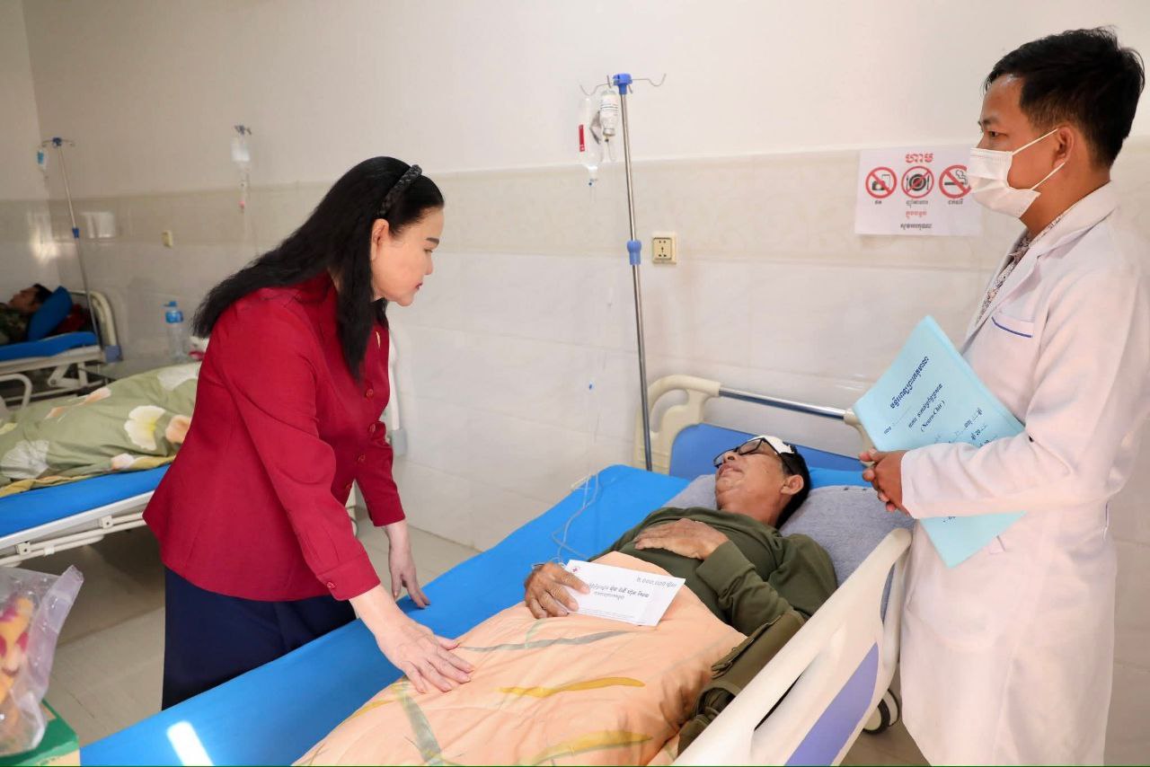 ថ្ងៃទី២០ ខែធ្នូ ឆ្នាំ២០២៥នេះ សម្ដេចកិត្ដិព្រឹទ្ធបណ្ឌិត ប៊ុន រ៉ានី ហ៊ុនសែន ប្រធានកាកបាទក្រហមកម្ពុជា បានអញ្ជើញជាលើកទី២ ក្នុងការចុះសួរសុខទុក្ខវីរយុទ្ធជនការពារបូរណភាពទឹកដីដ៏អង់អាចក្លាហាន ដែលរងរបួស និងផ្សែងពុលក្នុងសមរភូមិ កំពុងព្យាបាលនៅតាមមន្ទីរពេទ្យចំនួន៥ ក្នុងរាជធានីភ្នំពេញ។ នេះជាការចុះសួរសុខទុក្ខជាលើកទី២ របស់អ្នកម្តាយមនុស្សធម៌ ដើម្បីលើកទឹកចិត្ត និងផ្តល់ភាពកក់ក្តៅ ដល់វីរយុទ្ធជនដ៏អង់អាចក្លាហានរបស់យើង ដែលការចុះលើកទី១ កាលពីថ្ងៃទី១៥-១៦ ខែធ្នូ កន្លងទៅ។
