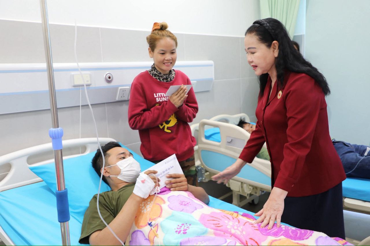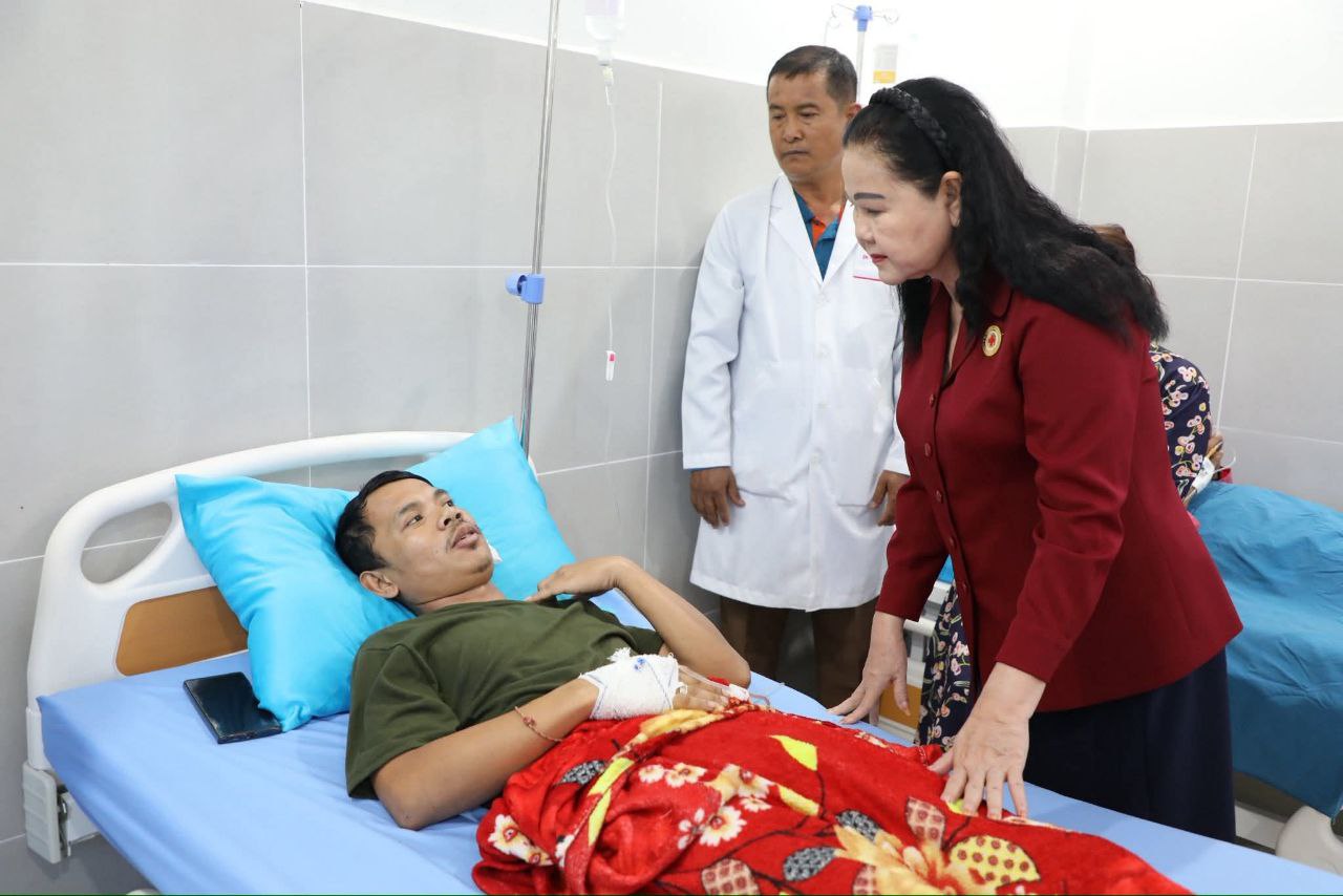 ក្នុងឱកាសនេះដែរ សម្តេចកិត្តិព្រឹទ្ធបណ្ឌិត ប៊ុន រ៉ានី ហ៊ុនសែន ក៏បាននាំនូវព្រះរាជបណ្តាំផ្តាំផ្ញើសួរសុខទុក្ខ ក្តីអាណិតអាសូរពីសំណាក់ សម្តេចព្រះមហាក្សត្រី ព្រះវររាជមាតាជាតិខ្មែរ ជាទីគោរពសក្ការៈដ៏ខ្ពង់ខ្ពស់បំផុត ជាពិសេស ស្ញប់ស្ញែងចំពោះទឹកចិត្តដ៏អង់អាចក្លាហាន ហ៊ានពលិកម្មគ្រប់បែបយ៉ាងដើម្បីបូរណភាពទឹកដីដ៏កម្សត់របស់យើង និងសូមជូនពរដល់វីរយុទ្ធជនគ្រប់រូប សូមឆាប់បានជាសះស្បើយឡើងវិញ។