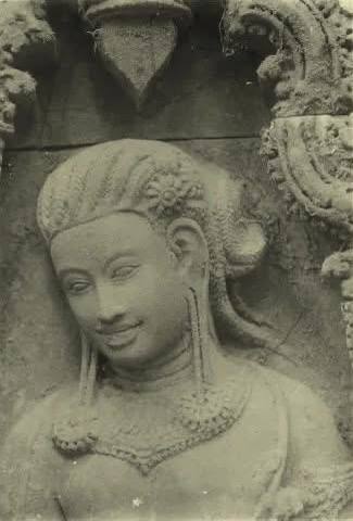 សូមពិនិត្យមើលរូបនេះឱ្យច្បាស់… មើលសក់ដែលក្រងជាក្បាច់ និងគ្រឿងអលង្ការនៅកចុះ! នេះមិនមែនជារូបដែលឆ្លាក់លេងៗទេ តែជាការបង្ហាញពី “ម៉ូដ” របស់នារីខ្មែរជាន់ខ្ពស់ក្នុងសម័យនោះ។