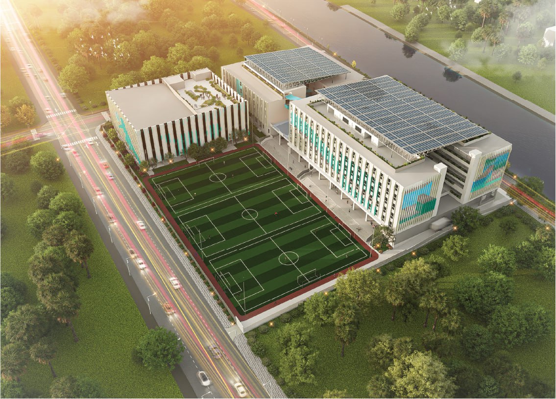បរិវេណសាលានឹងផ្តោត ការយកចិត្តទុកដាក់យ៉ាងខ្លាំងទៅលើកីឡា និងសិល្បៈ ជាមួយនឹងកន្លែងលេងកីឡាដ៏ទូលំទូលាយ រួមជាមួយនឹងកន្លែងកម្សាន្ត ច្នៃប្រឌិត និងសម្តែង។