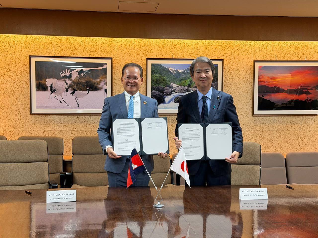 អនុស្សរណៈនៃកិច្ចសហប្រតិបត្តិការ ក្នុងវិស័យបរិស្ថាន ត្រូវបានចុះហត្ថលេខារវាងលោកបណ្ឌិត អ៊ាង សុផល្លែត និងឯកឧត្តម Hirotaka Ishihara រដ្ឋមន្ត្រីក្រសួងបរិស្ថានជប៉ុន និងបានផ្តោតលើ៖