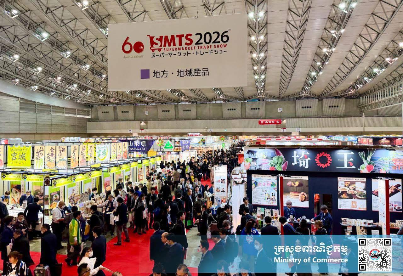 ព័ត៌មាននេះត្រូវបានបង្ហាញ នៅពេលលោកលោក ស៊ីន សារ៉ាយ អនុព័ន្ធពាណិជ្ជកម្មអមស្ថានឯកអគ្គរាជទូតកម្ពុជា ប្រចាំប្រទេសជប៉ុន បានសម្របសម្រួល និងចូលរួមគាំទ្រការចូលរួមរបស់ក្រុមហ៊ុនYamato Printing Group, ក្រុមហ៊ុន Cambodia Life និងក្រុមហ៊ុនConfirel Co., Ltd. ក្នុងពិព័រណ៍ពាណិជ្ជកម្ម “The 60th Supermarket Trade Show 2026 (SMTS2026)” ដែលប្រព្រឹត្តទៅចាប់ពីថ្ងៃទី១៨ -២០ ខែកុម្ភៈ ឆ្នាំ២០២៦ នៅសាលពិព័រណ៍Makuhari Messe ខេត្តឈិបាក់ ប្រទេសជប៉ុន។