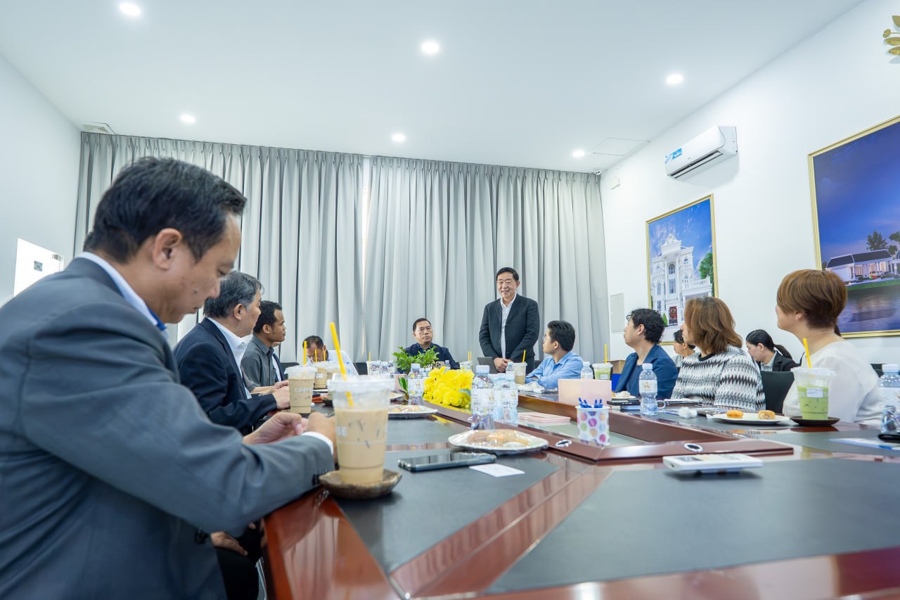 ភ្នំពេញៈ ឧកញ៉ាបណ្ឌិត គីម ហ៊ាង អគ្គនាយកបុរី វិមានសំណាង បានអញ្ជើញទទួលជួបអ្នកវិនិយោគមកពីប្រទេសជប៉ុន ដែលស្វែងរកឱកាសវិនិយោគពាណិជ្ជកម្មជាមួយនឹង បុរី វិមានសំណាង និងវិនិយោគក្នុងវិស័យអចលនទ្រព្យនៅកម្ពុជា នៅការិយាល័យ បុរី វិមានសំណាង។
