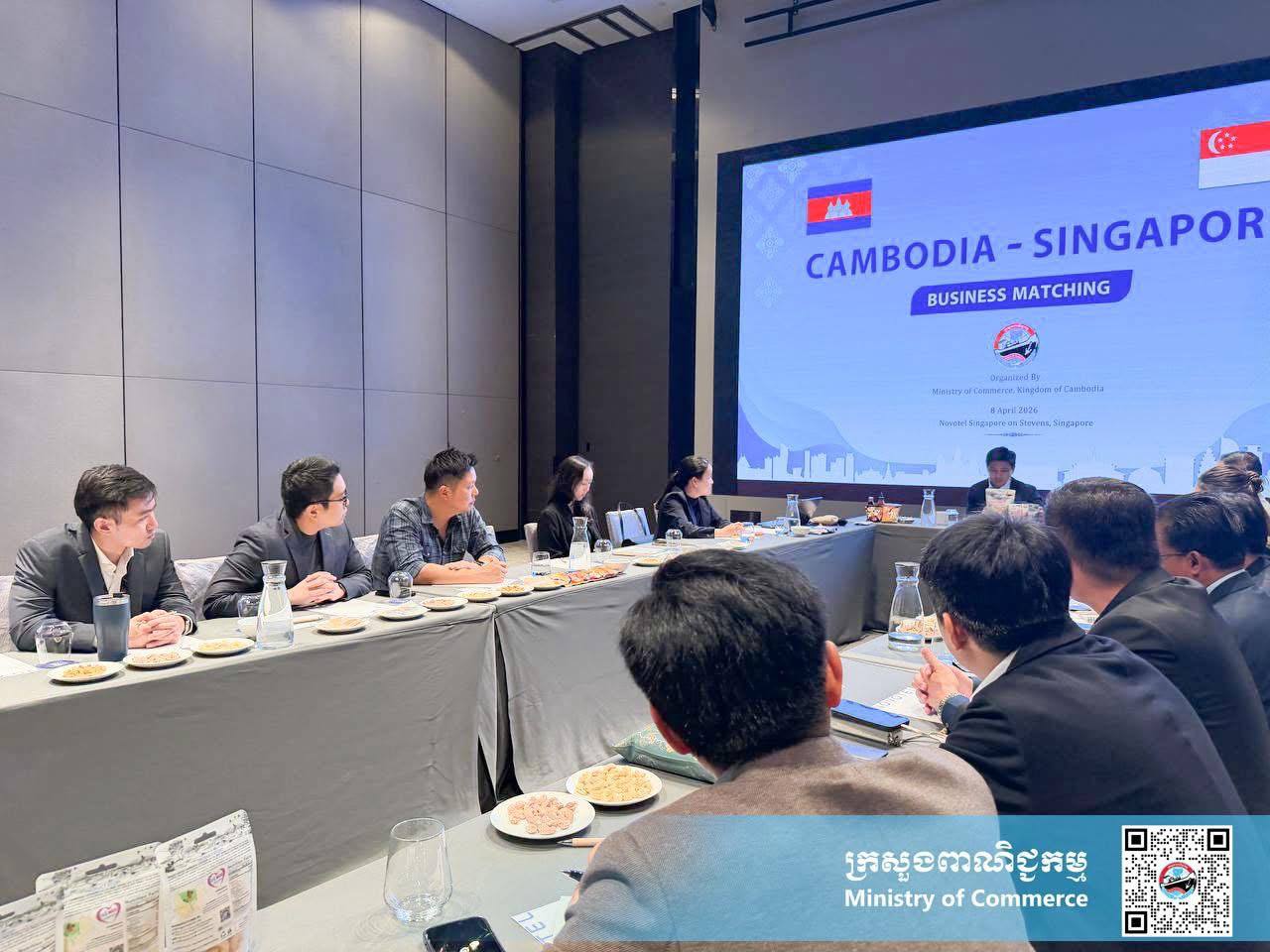 សឹង្ហបុរីៈ លោកសំហេង បូរ៉ា រដ្ឋលេខាធិការ និងប្រធានក្រុមការងារជំរុញការនាំចេញ នៃក្រសួងពាណិជ្ជកម្ម បានដឹកនាំរៀបចំកម្មវិធីជំនួបផ្គូផ្គងអាជីវកម្ម (Business Matching) ដោយមានការគាំទ្រពី Singapore Food Agency (SFA)។