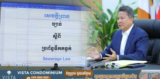 សេចក្តីព្រាងច្បាប់ស្តីពីប្រព័ន្ឋទឹកកខ្វក់ត្រៀមដាក់ឆ្លងគណៈរដ្ឋមន្រ្តី