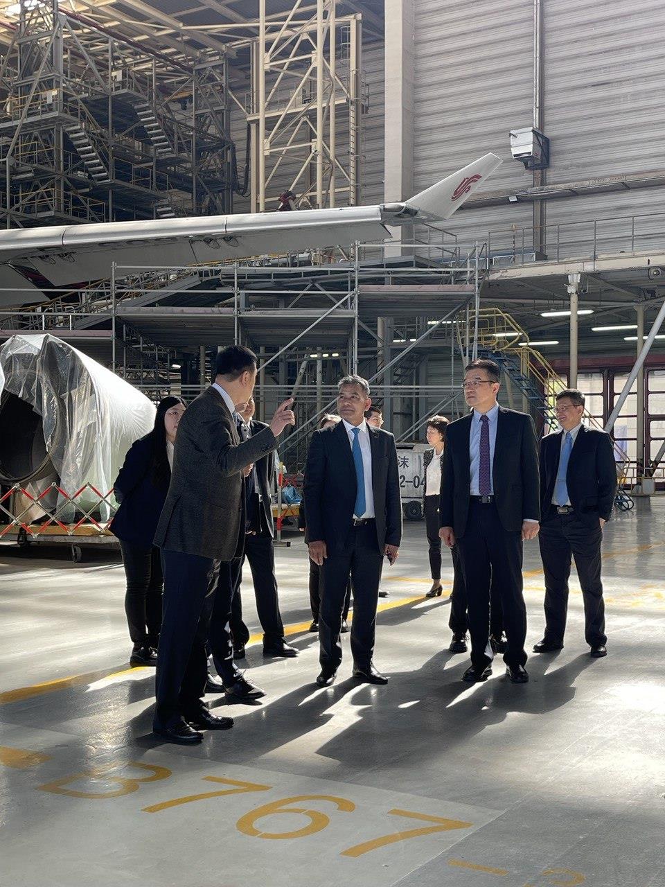 គណៈប្រតិភូរដ្ឋលេខាធិការដ្ឋានអាកាសចរស៊ីវិល បានជួបពិភាក្សាជាមួយលោក NI Jiliang ជាប្រធានក្រុមប្រឹក្សាភិបាល និងអគ្គលេខធិការបក្សប្រចាំក្រុមហ៊ុនAMECO និងសហការីក្រុមហ៊ុន AMECO ហើយបានចែករំលែក និងស្វែងយល់លើដំណើរការ និងប្រតិបត្តិការអាជីវកម្ម លើការងារថែទាំជួសជុលអាកាសយាន និងវិស្វកម្មអាកាសយាន។